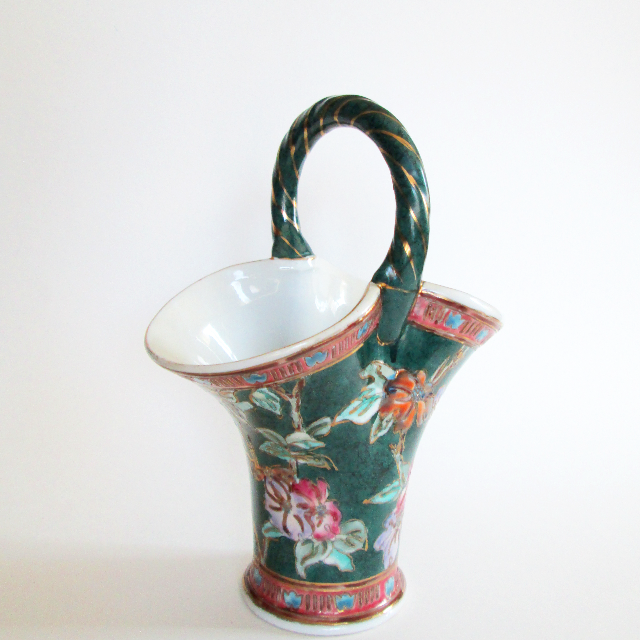 Hand-Painted Ceramic with Handle Traditional Asian Home Decor Collectible Pottery