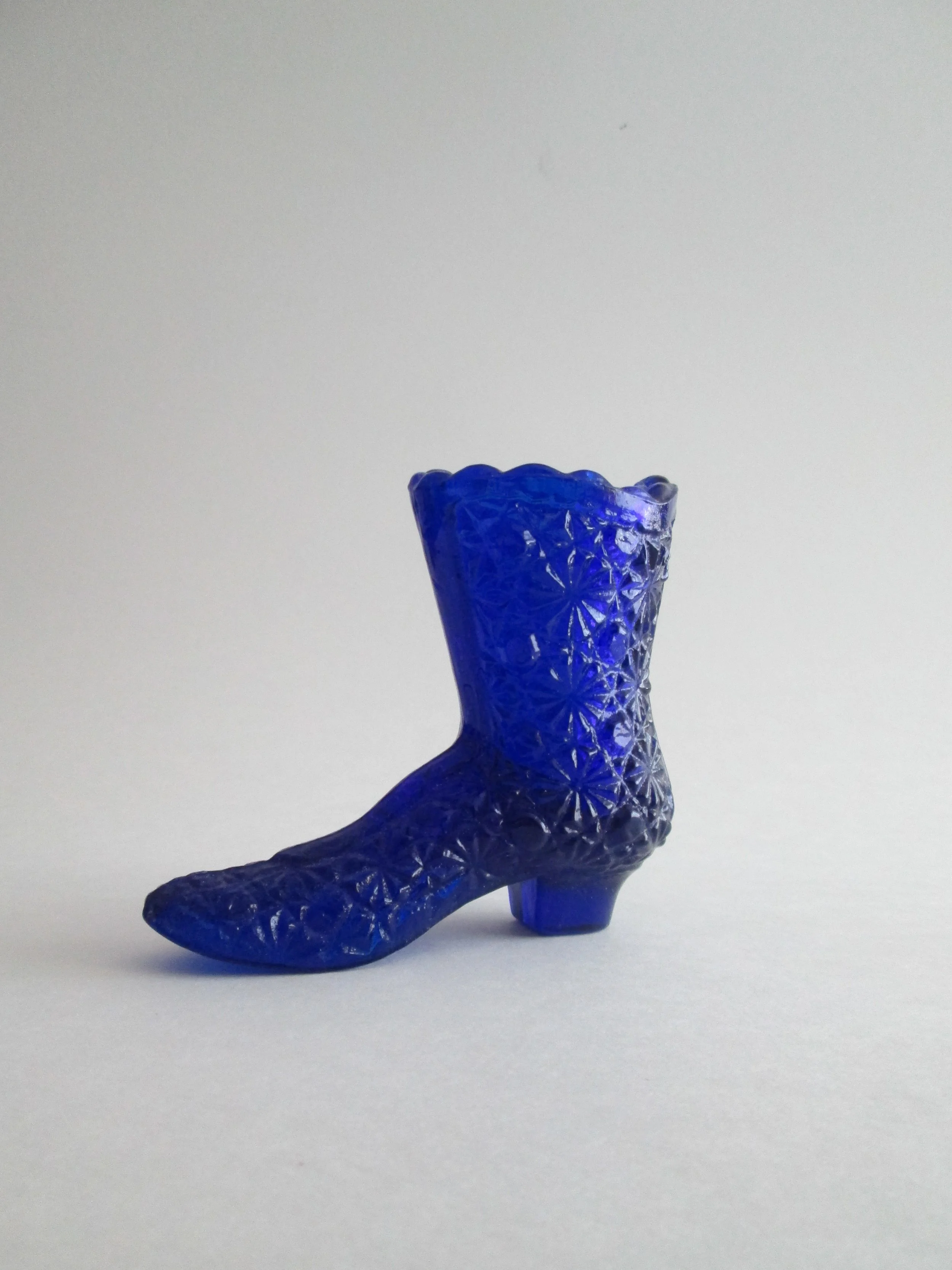 Cobalt Blue Glass Victorian Ladies Boot Figurine